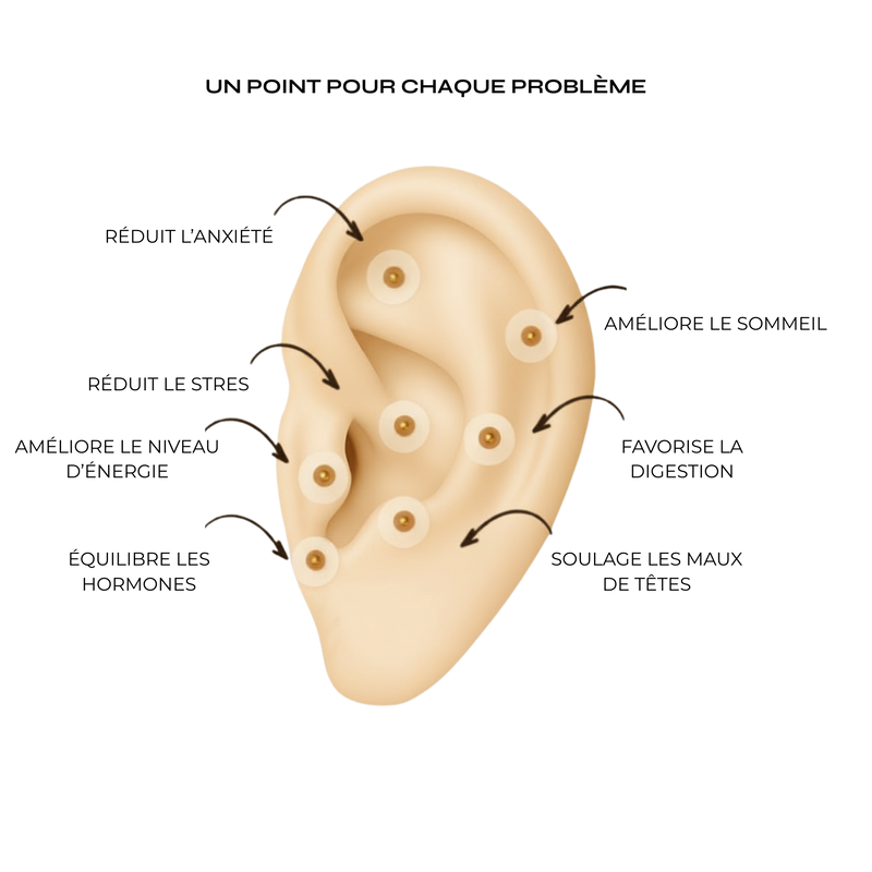Votre oreille contient plus de 200 points réflexes reliés à votre corps entier. L'auriculothérapie stimule ces points pour aider à apaiser stress, tensions et insomnies naturellement.